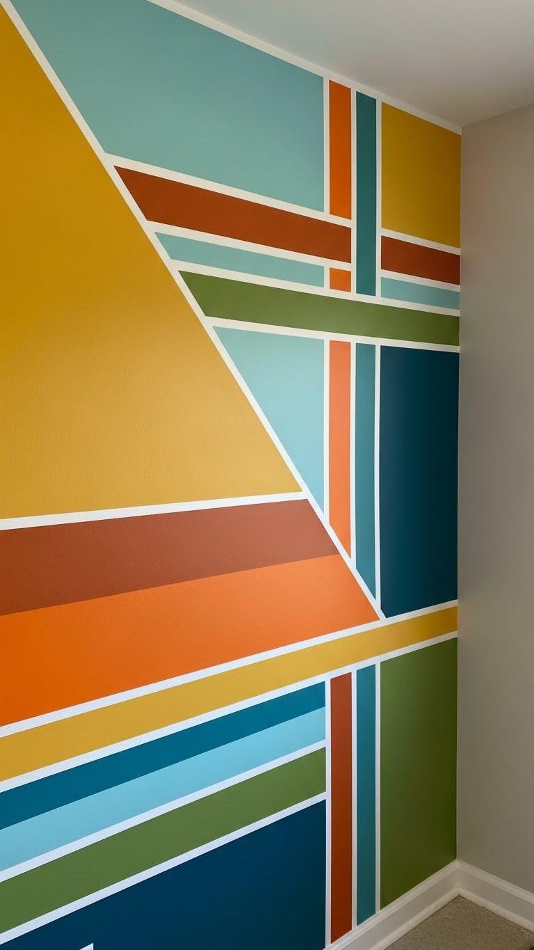 Retro color-blocking turns your wall into a bold graphic statement, pairing saturated hues in clean geometric shapes that instantly lift a room’s energy.