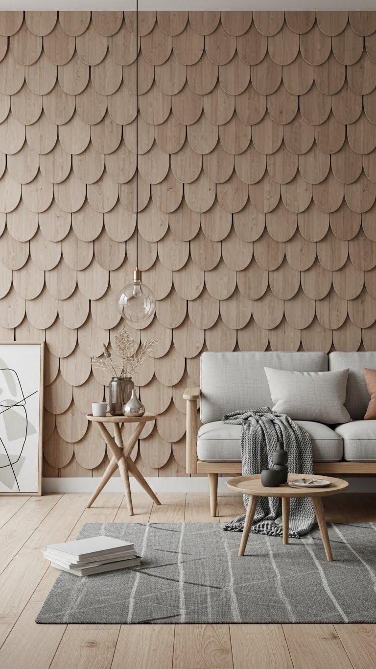 Wood scallop pattern walls transform plain surfaces into rhythmic, tactile features that catch the eye and soften a room’s geometry.