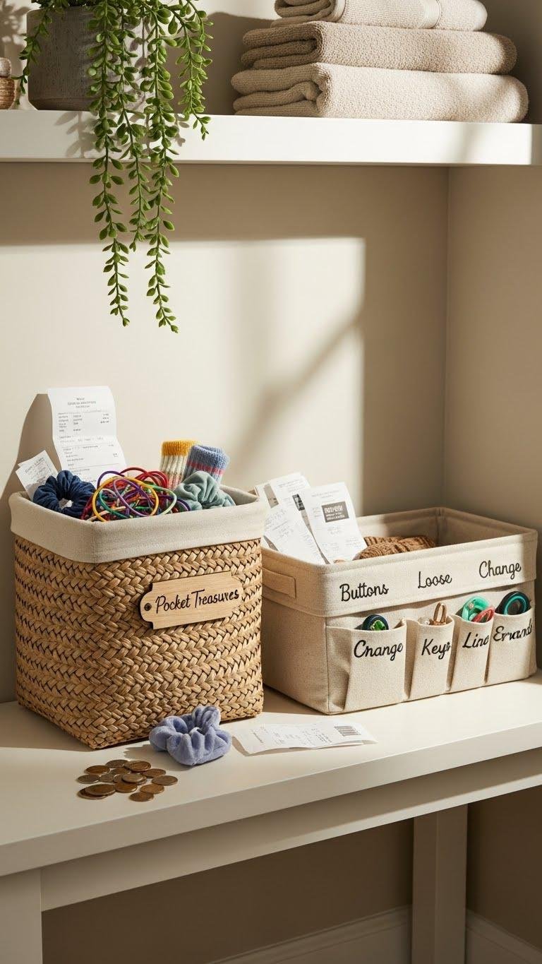 Use a shallow bin with labeled hidden pockets to sort laundry trinkets quickly. You’ll reclaim time, cut clutter, and enjoy a tidier routine without fuss or permissions.