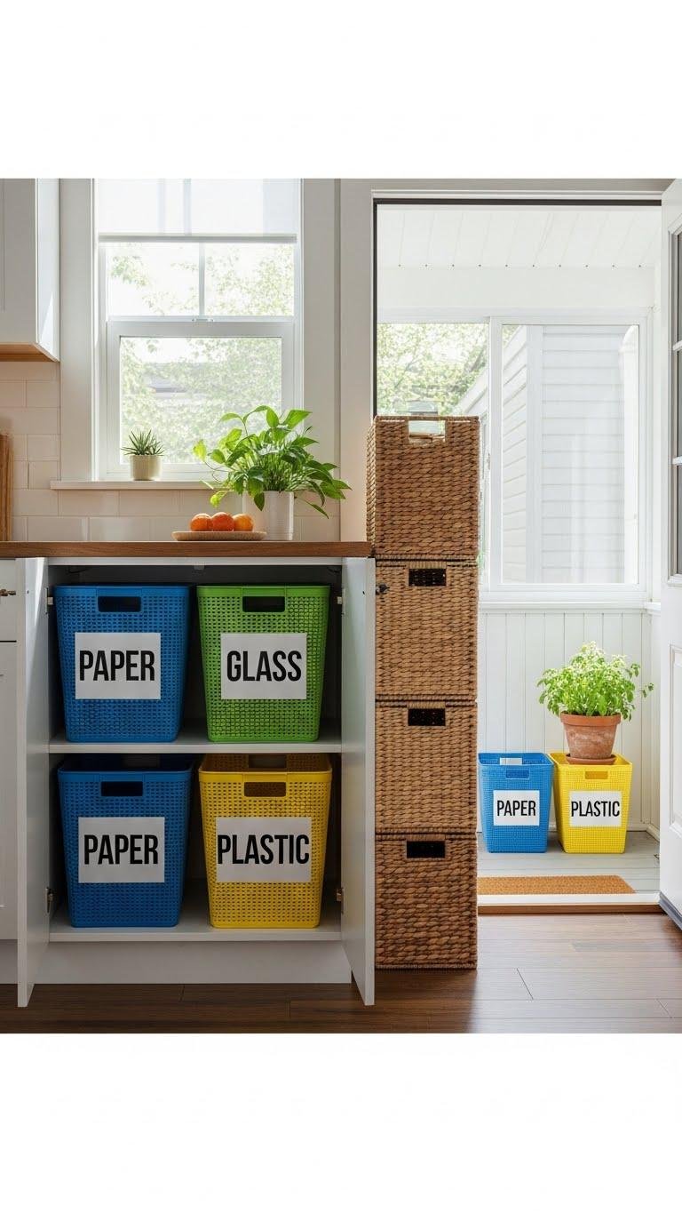 Place baskets where you work and drop off: under counter, by door, or on a porch. You’ll cut clutter, save time, and keep recycling effortless.