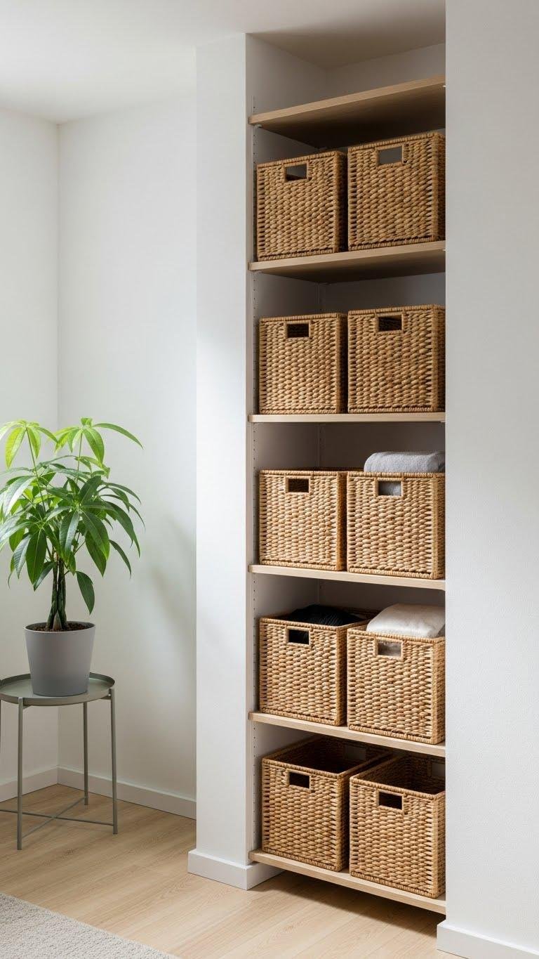 Baskets are an easy, stylish way to tame clutter while keeping things within reach, and you’ll find simple tricks to make them look uniform and purposeful. From shallow bins for washcloths to deep baskets for sheets, plus faux fronts, labels, and adjustable inserts, these ideas help you organize entryways, bathrooms, and living rooms without fuss. Keep going to see practical setups and quick DIY fixes that actually make daily routines easier.