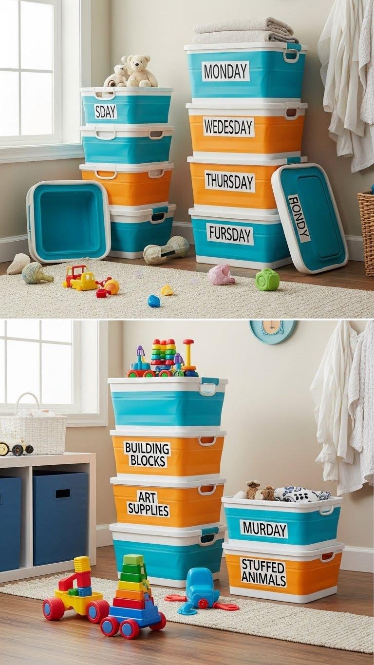 Use them for toy rotation to keep play fresh and simple; label bins by theme. For laundry scheduling, stack by day or load, then collapse when not needed.