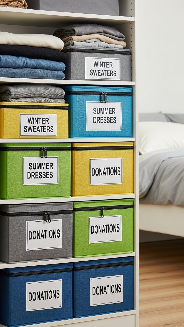 You can pack items for seasonal packing, seal them, and stash them under beds or in closets. Add clear donation labeling to speed drop-offs and keep intention visible. You’ll reclaim space, reduce decision fatigue, and move items out smoothly when you’re ready.
