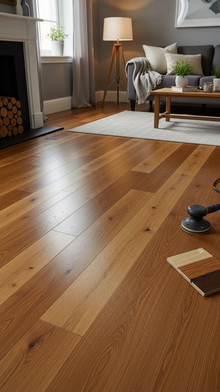 Refresh or replace your hardwoods to change a room’s whole vibe without gutting it. You can sand and refinish to revive character—use modern sanding techniques to remove wear, then pick finish types that match your lifestyle: matte for low-maintenance, gloss for drama.