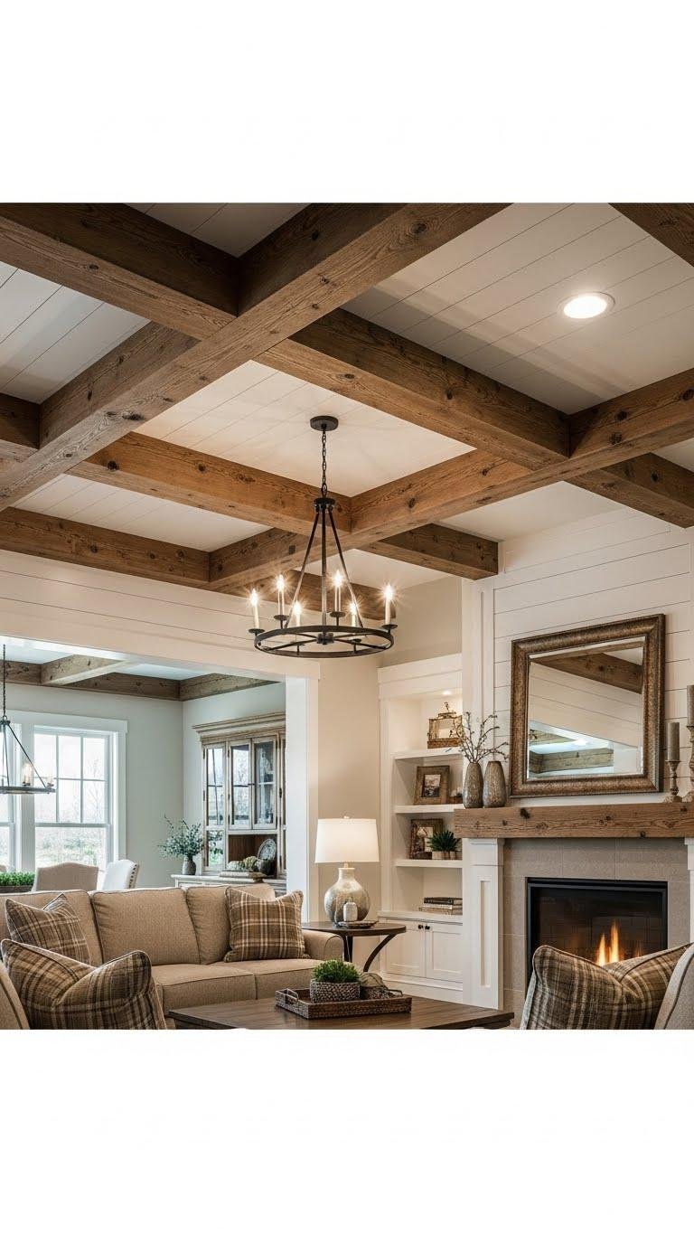 You can add rustic beams for character or use engineered millwork for budget-friendly precision. Both options let you customize finishes, create cozy scale, and refresh a room without feeling boxed in.