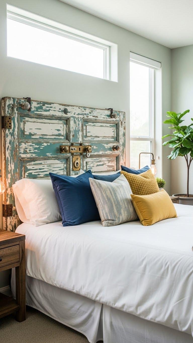 Repurposed-door headboards give your bedroom instant character by turning architectural history into usable art. You’ll choose a vintage door, strip or embrace paint distressing, and mount it securely for a bold focal point.