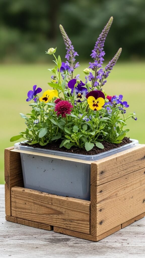 Tuck a plastic liner into a rustic wood box and you’ve got an instant, waterproof planter that’s both sturdy and stylish.