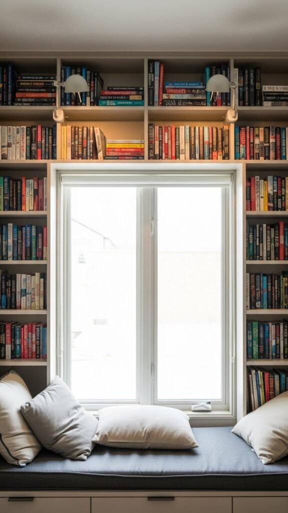 You can frame the view with shelves, add cushioned window seating for lazy afternoons, and install adjustable book lighting for evening reads.