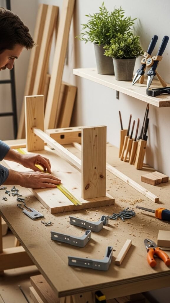You’ll fit plants, books, or a lamp into tight corners without bulky brackets. Cut boards to size, hide angled supports inside for a seamless look, and mount confidently. It’s a freeing, clean solution that maximizes space and style.