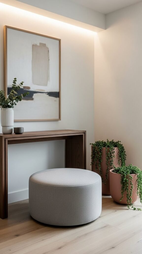 A well-placed piece of furniture instantly defines the entryway’s purpose and flow, so choose items that fit the scale and movement of the space. You’ll create a focal arrangement with a bench, slim console, or shelf that anchors the room without blocking traffic flow.