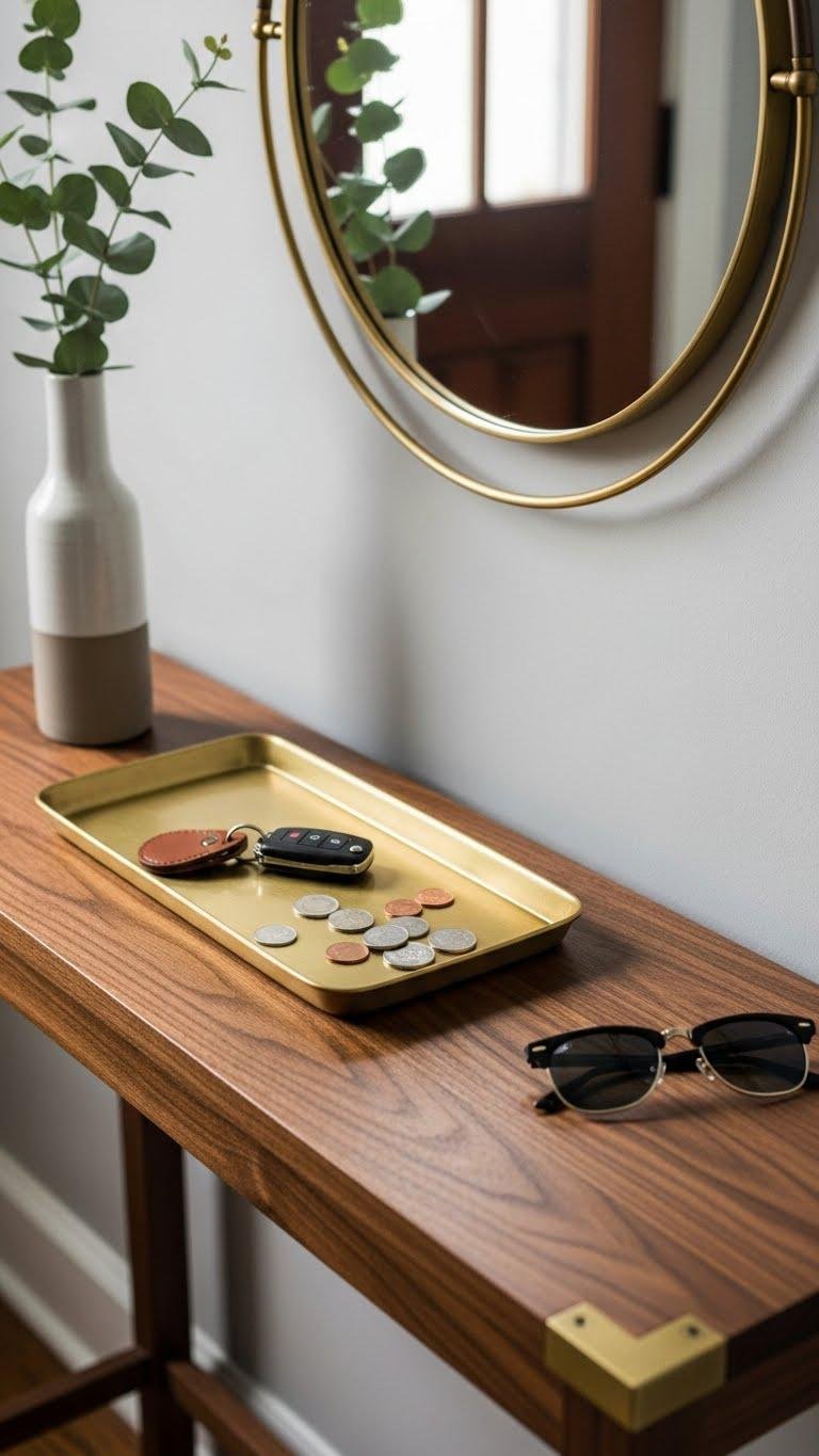 If you like keeping small items off surfaces with an over-the-door organizer, a tray or bowl on a console gives you the same tidy payoff for things you carry in pockets. Choose an entry tray sized for keys, loose change, and sunglasses so your daily essentials stay visible.
