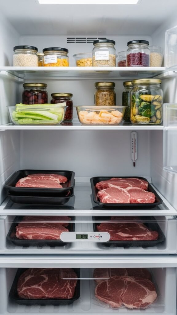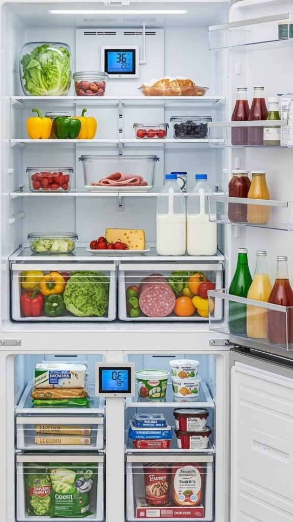 You should set your refrigerator between 35°F and 38°F (1.7–3.3°C) and the freezer at 0°F (-18°C) to slow bacterial growth and keep food fresh without freezing produce; studies and food-safety guidelines show those ranges balance safety and quality.
