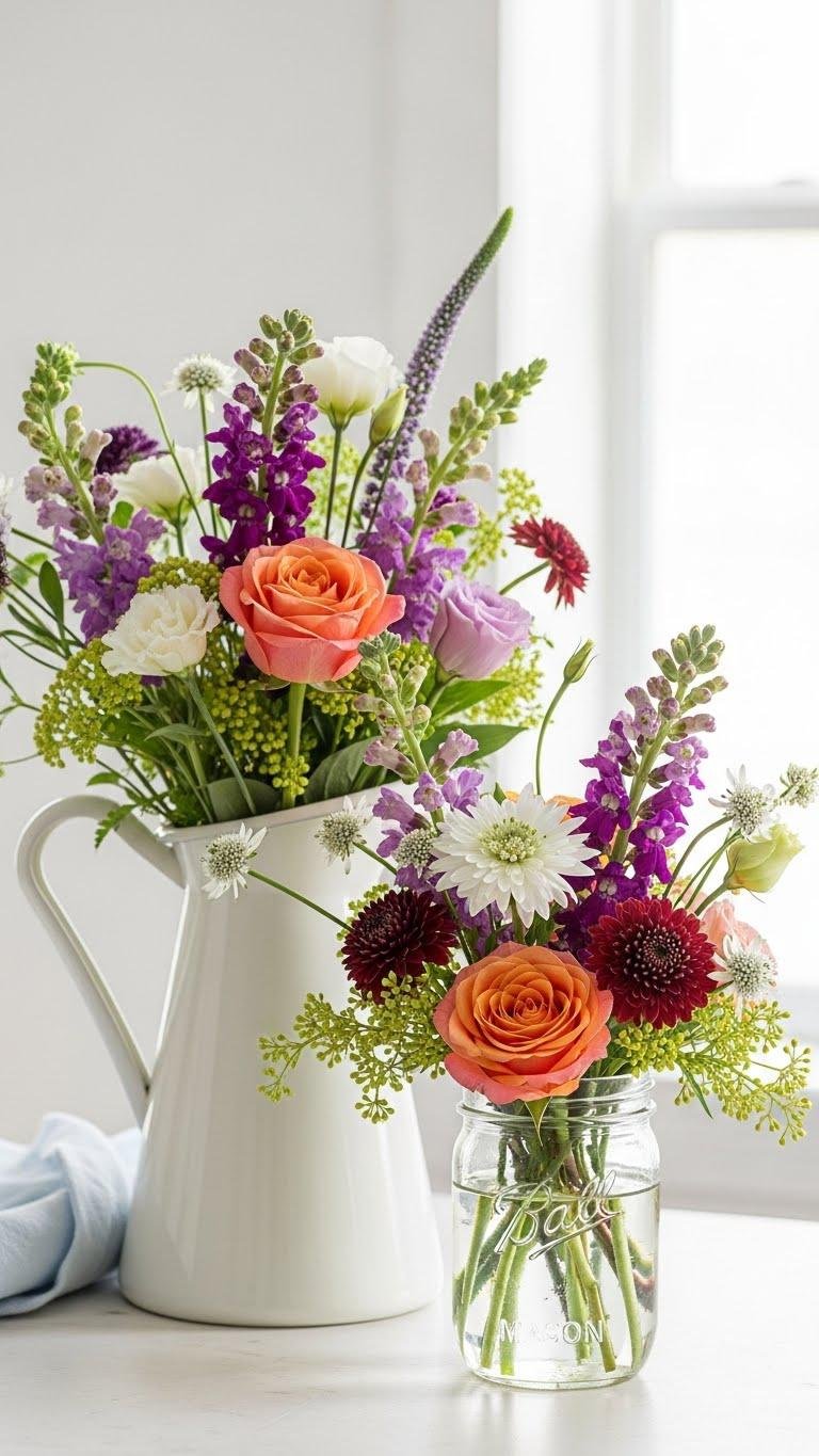 Let delicate greenery soften edges and add movement. You’ll mix textures, trim stems at an angle, and rotate the arrangement until it feels effortless—free, elegant, and perfectly you.