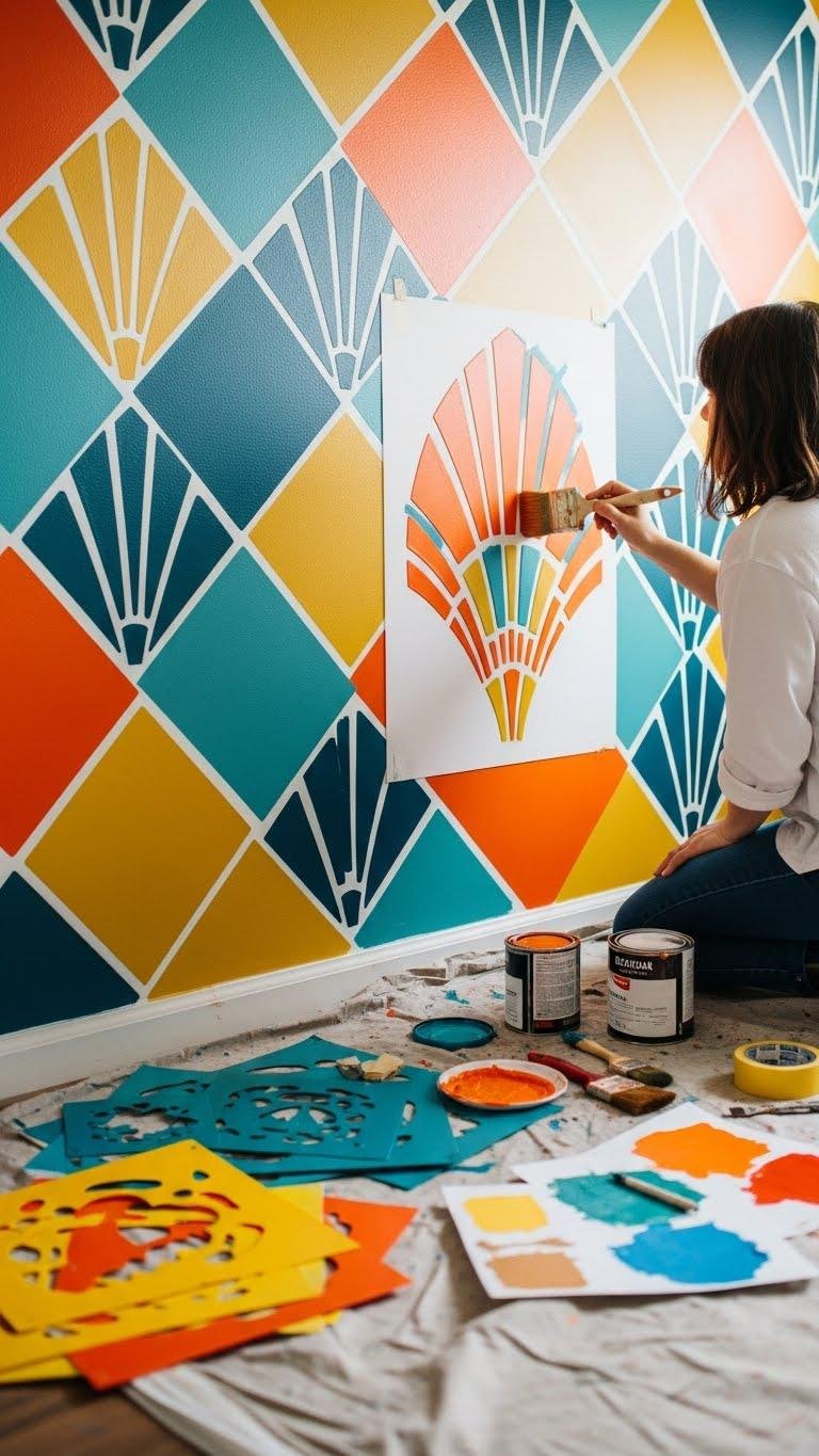 Use low-tack adhesive and a pouncing brush so you get crisp edges. You’ll enjoy a liberated, intentional focal wall.