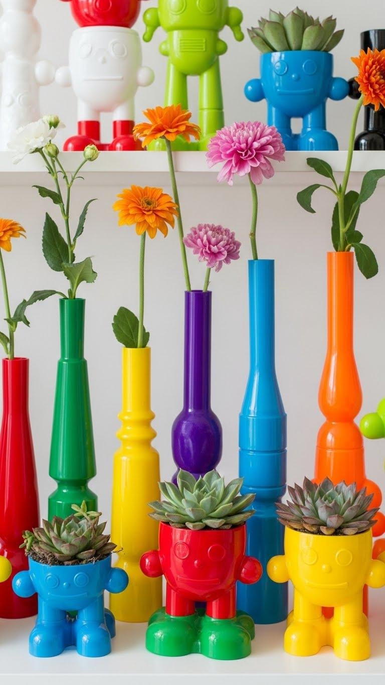 Give old plastic toys a chic second life by turning them into vase holders that add playful scale and unexpected texture to your shelves. You’ll hollow, seal, and finish toys into sleek toy vases or convert them into colorful plastic planters.