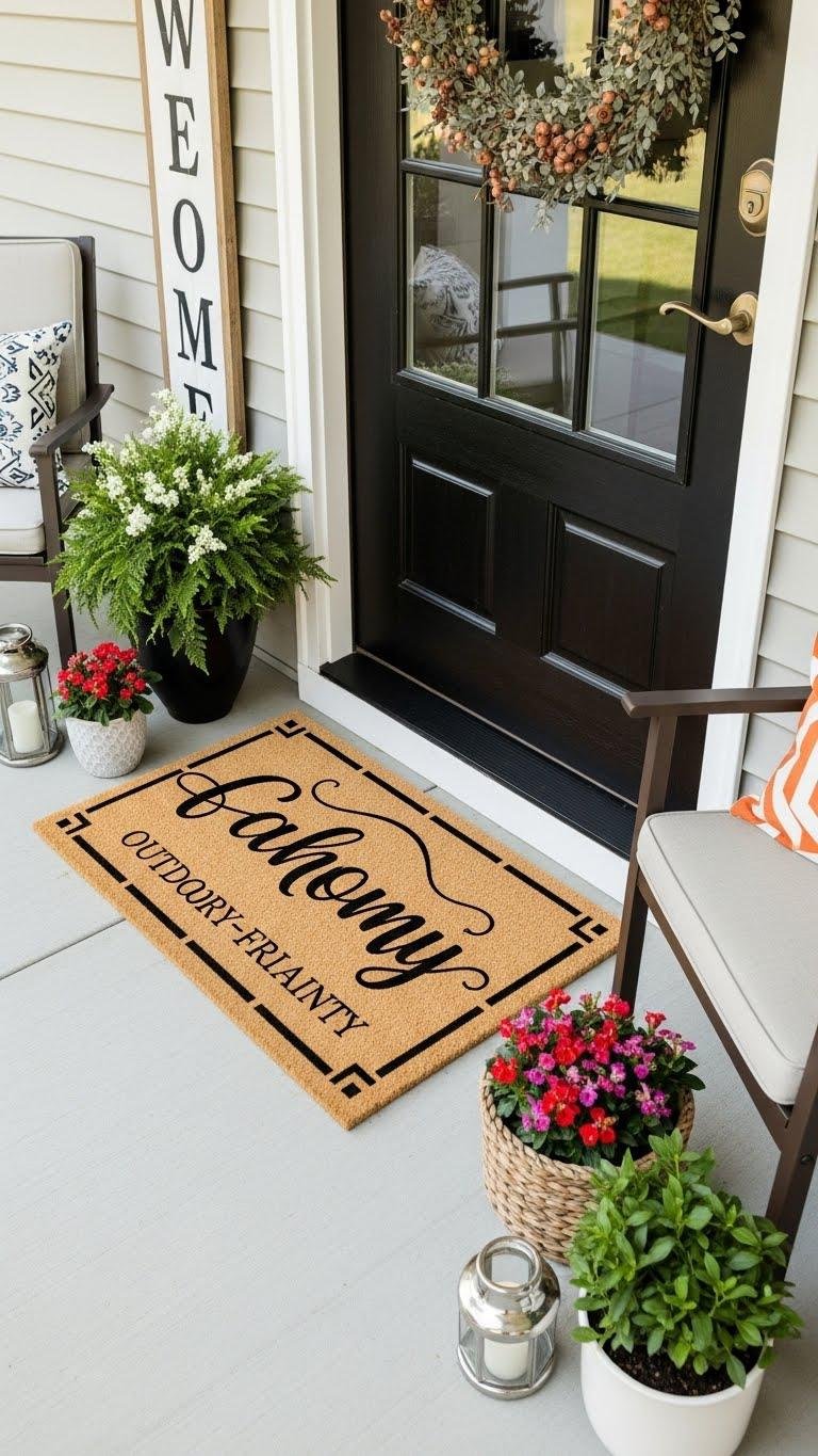 Choose outdoor friendly paints and a sturdy mat, then pick fonts or icons that mirror your vibe. You’ll stencil names, monograms, or seasonal phrases for easy updates. It’s a simple, liberating project that elevates your entry without fuss.