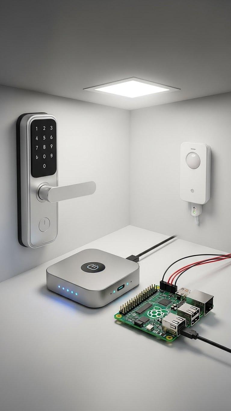 You’ll set up local redundancy with a small hub or Raspberry Pi, ensuring locks, lights, and sensors respond reliably.
