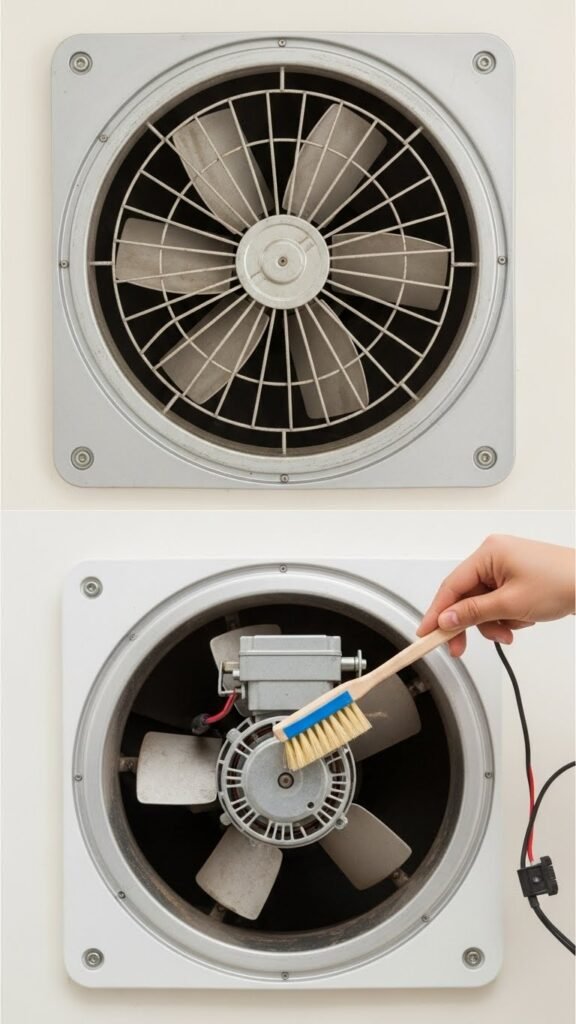Often you’ll notice exhaust fans getting noisy or weak long before you see the dust — that’s your cue to clean them.