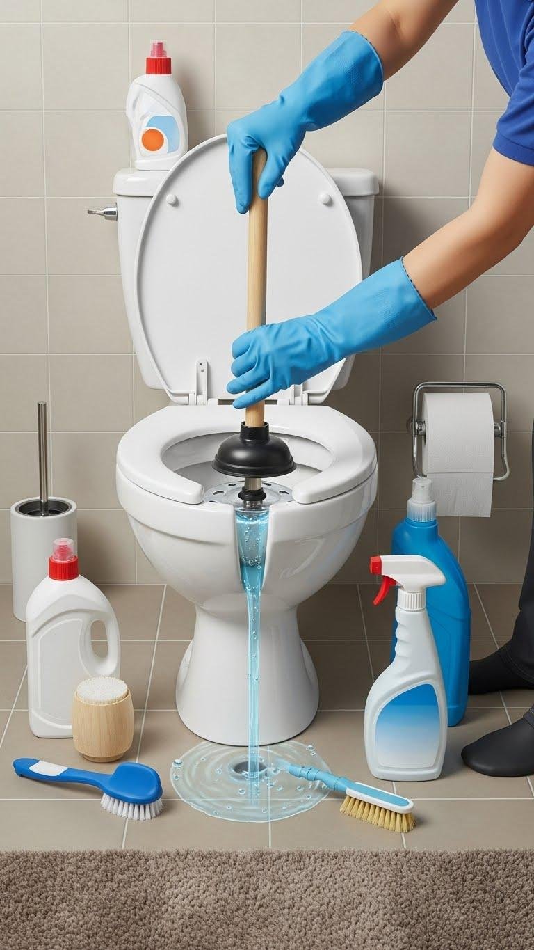 When a toilet backs up, don’t panic—move quickly with a plan you can handle yourself. Grab a flange plunger, position firmly, and pump with steady pressure using a reliable plunger technique.