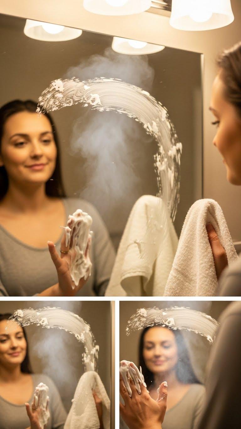 You can stop your bathroom mirror from fogging with a tiny, hassle-free trick: rub a thin layer of shaving cream or a dab of dish soap over the glass, wipe it off so a faint film remains, and the surface will resist steam for several showers.