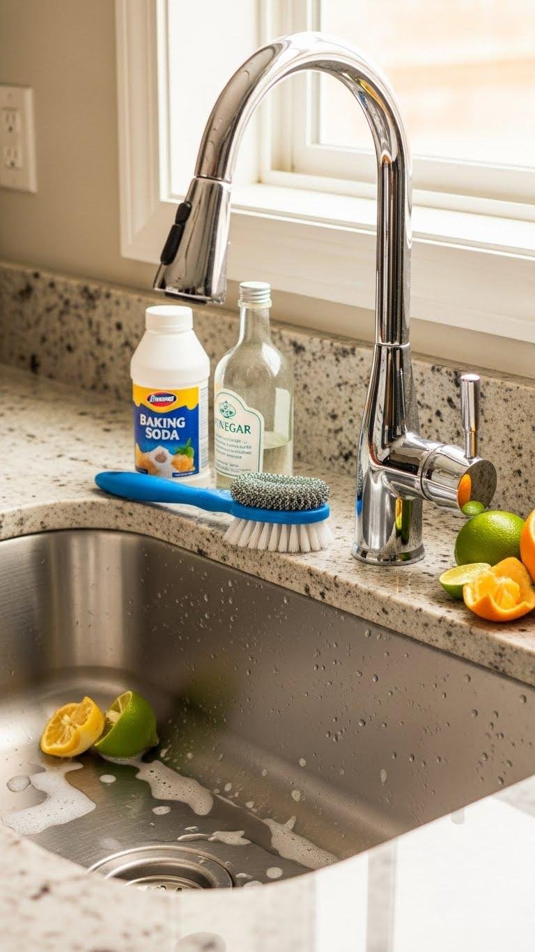 Rinse, dry, and polish to restore stainless shine. Let citrus peels air-dry in the disposal for fresh confidence.