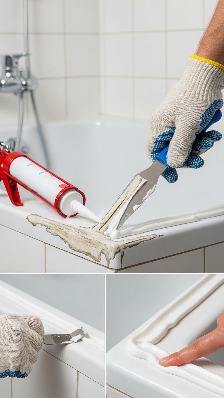 Let it cure, then smooth joints. Remove old caulk, dry surface, and recaulk with silicone. Finish with grout sealing to protect lines—clean, simple, and freeing upkeep.