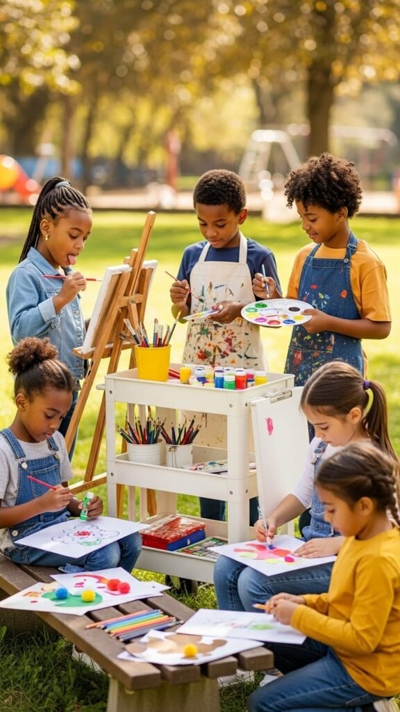 Roll the cart up and watch creativity spill out—your mobile art cart keeps paints, brushes, paper, and little treasures within easy reach so projects start faster and cleaner.