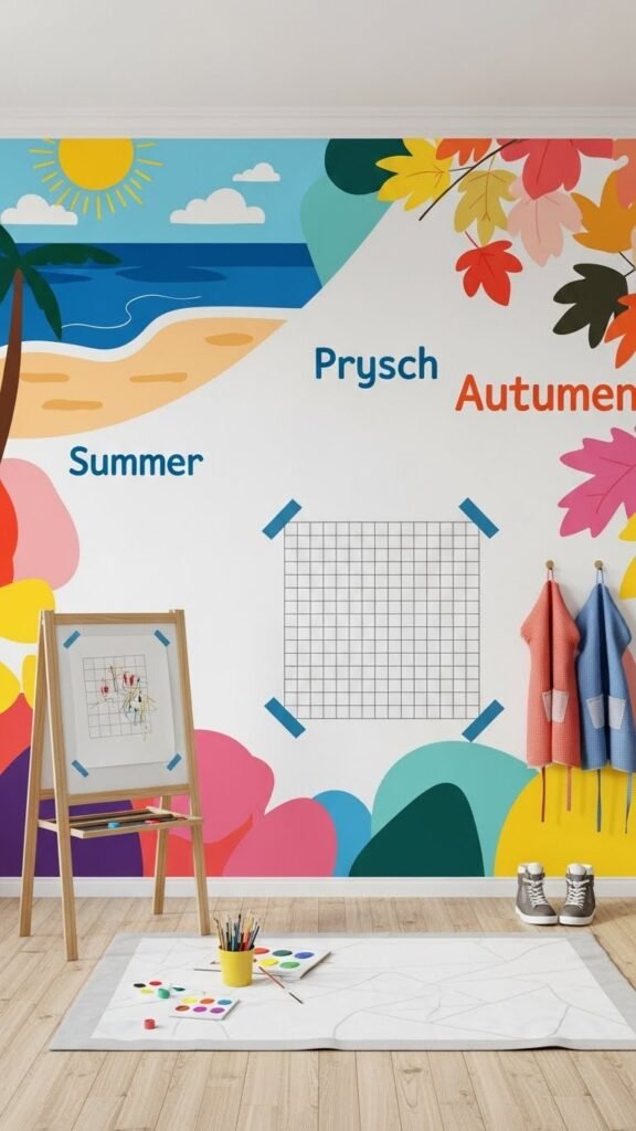 Transforming a large blank wall into a mural gives your child’s room instant personality and an ever-changing backdrop for play, learning, and photos. Let kids lead: tape temporary grids, set up a floor easel nearby, and stash paint smocks for mess-friendly sessions.
