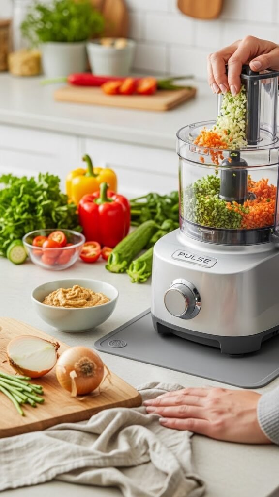 You’ll use pulse bursts for control, scoop with confidence, and fit a silicone mat for noise reduction and easy cleanup.