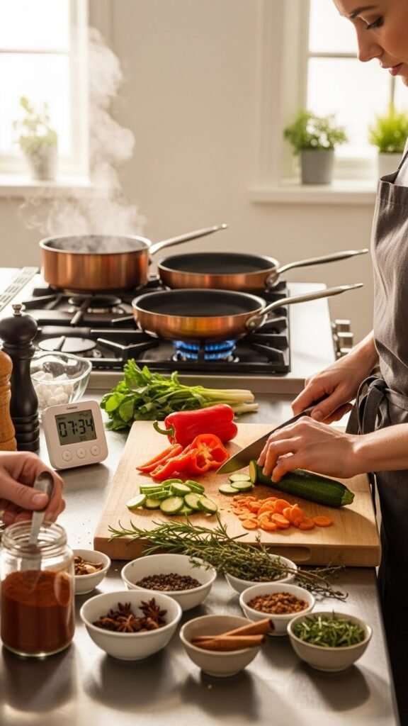 Use set timers and advance prep to stay present, focused, and free to enjoy cooking.