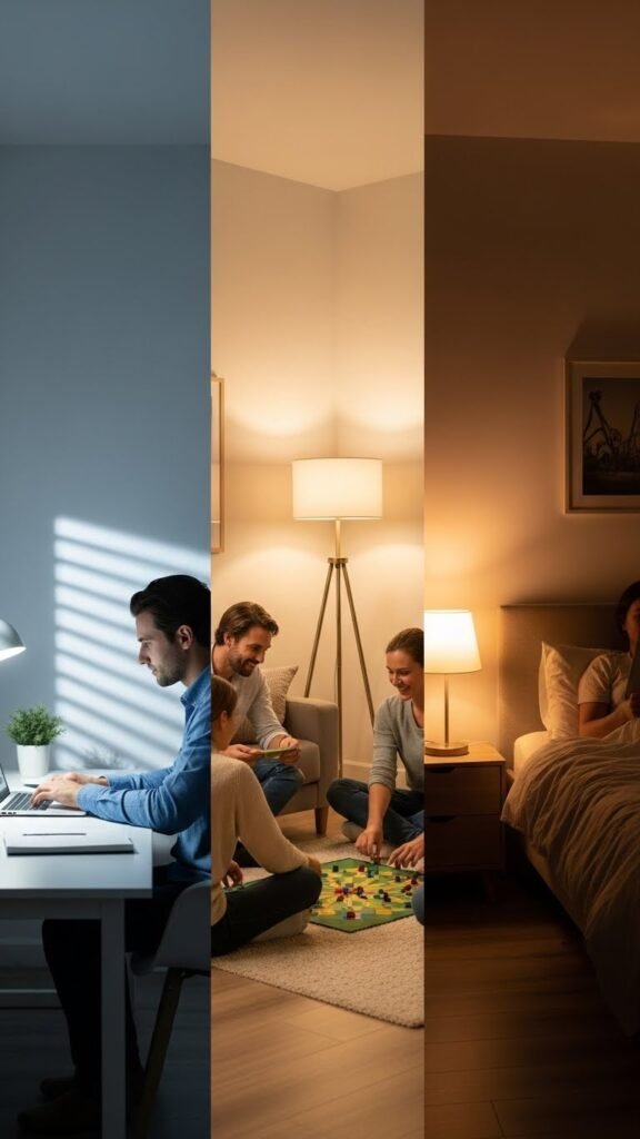 Balancing ambient, task, and accent lights lets you shape how a room feels and functions throughout the day, so you can move from focused work to relaxed downtime without fighting shadows.