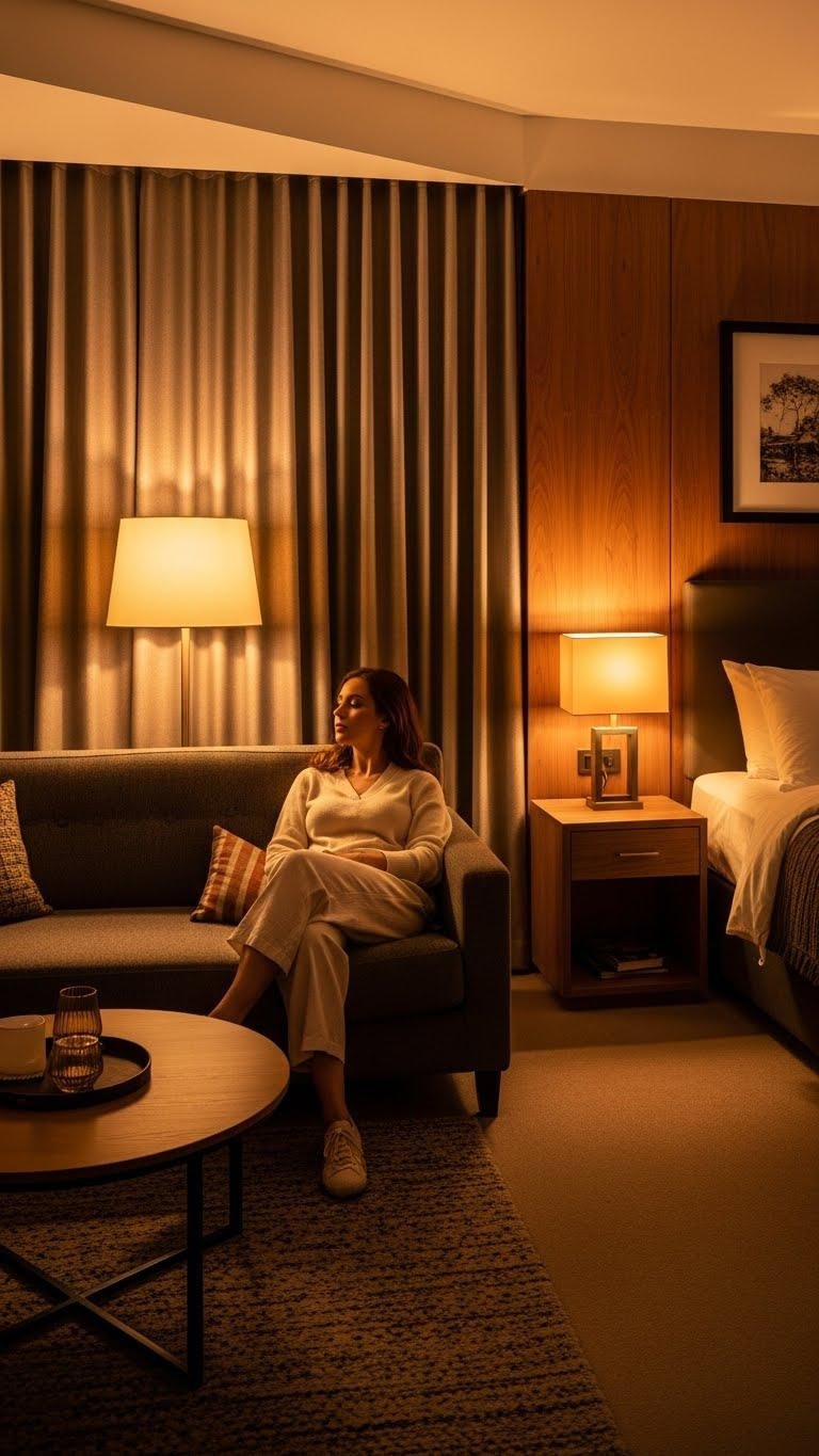 Opt for sleep friendly bulbs, layered low-level fixtures, and soft lamps to control mood without harshness.