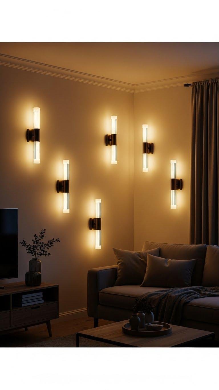 Mount wall sconces to wash your walls in soft, vertical light that instantly adds depth and warmth to a room. You’ll craft mood and freedom with vertical layering: place sconces at eye level, stagger heights for drama, and mind sconce spacing—usually 24–36 inches apart or scaled to wall width.