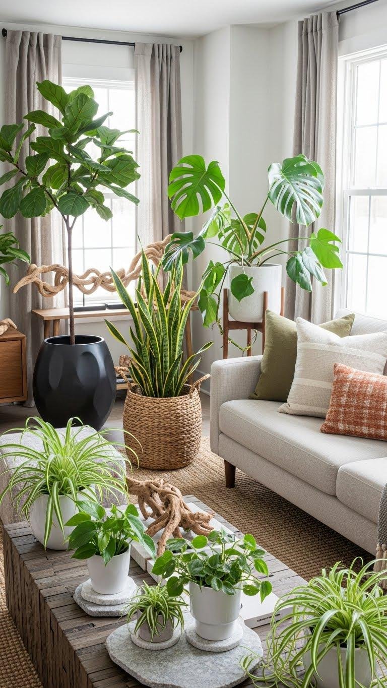 When you introduce plants and natural materials into your living room, they instantly soften hard lines and add life without upending a curated aesthetic.