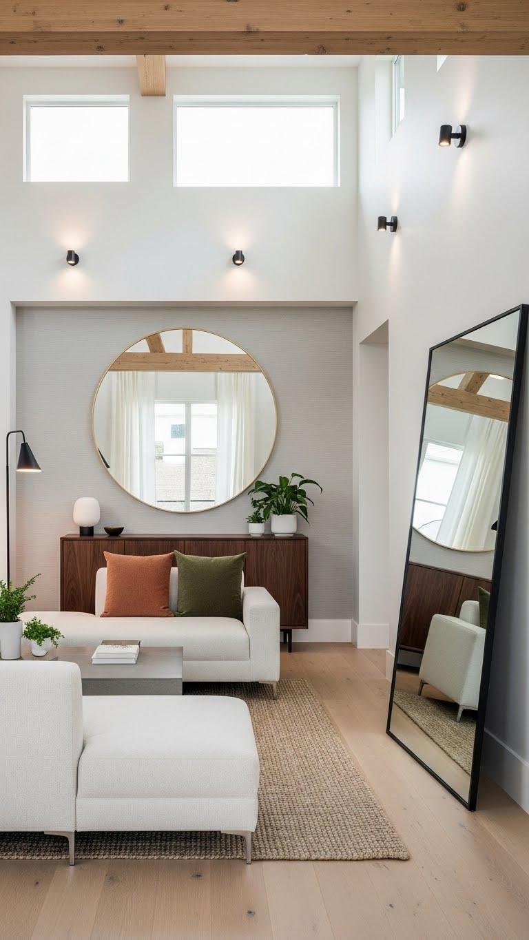 Lean a tilted floor mirror against a wall to create depth and effortless movement. You’ll free the space visually, highlight architectural details, and craft a curated, airy atmosphere that feels modern, intentional, and uniquely yours.