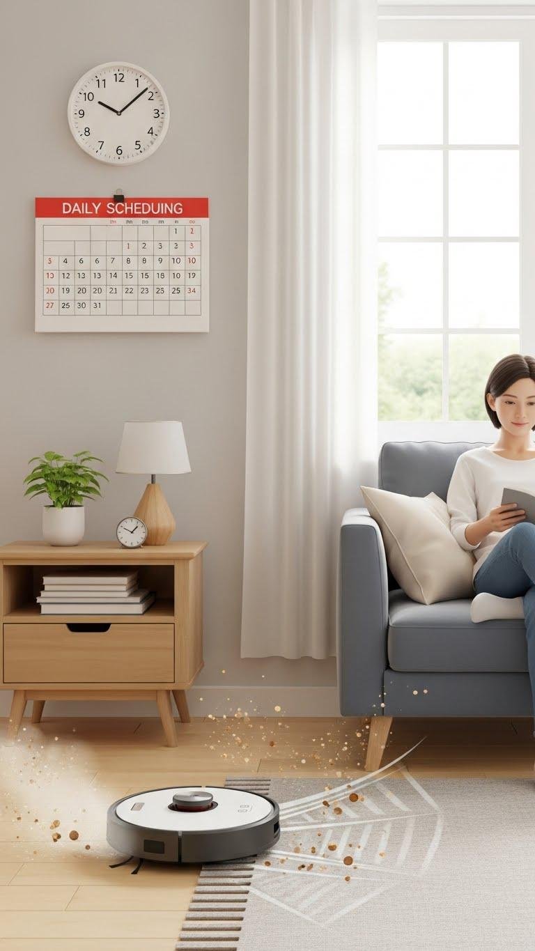 Start a daily habit of running your robot vacuum so dust and crumbs never pile up — it takes minutes to schedule and saves you deep-cleaning time later.