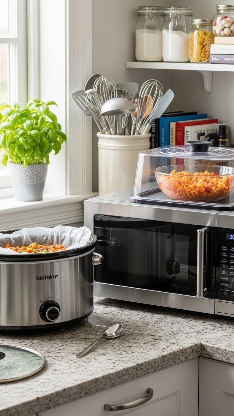Put Slow Cooker Liners and Microwave Covers to Prevent Mess