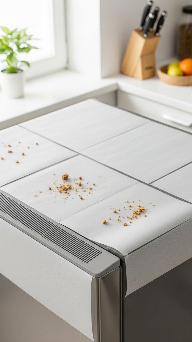 On top of your fridge, lay a sheet of wax paper to catch dust, crumbs, and spills so you can skip scrubbing later. Trim to fit around the vent and fridge seal, choose paper sizes that cover the surface, and replace when dirty. You’ll save minutes weekly, keep a tidy kitchen without hassle, and enjoy more freedom from chores.