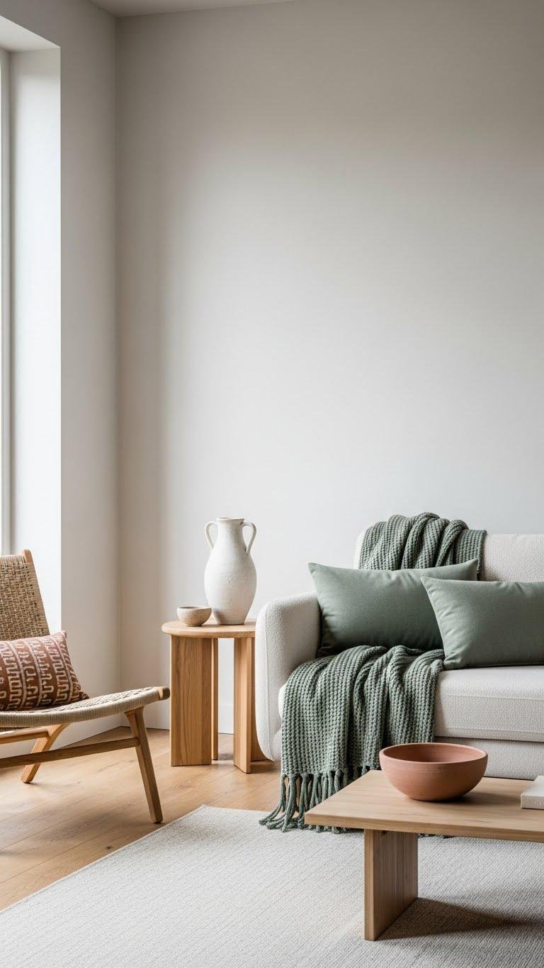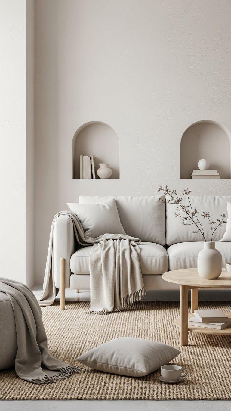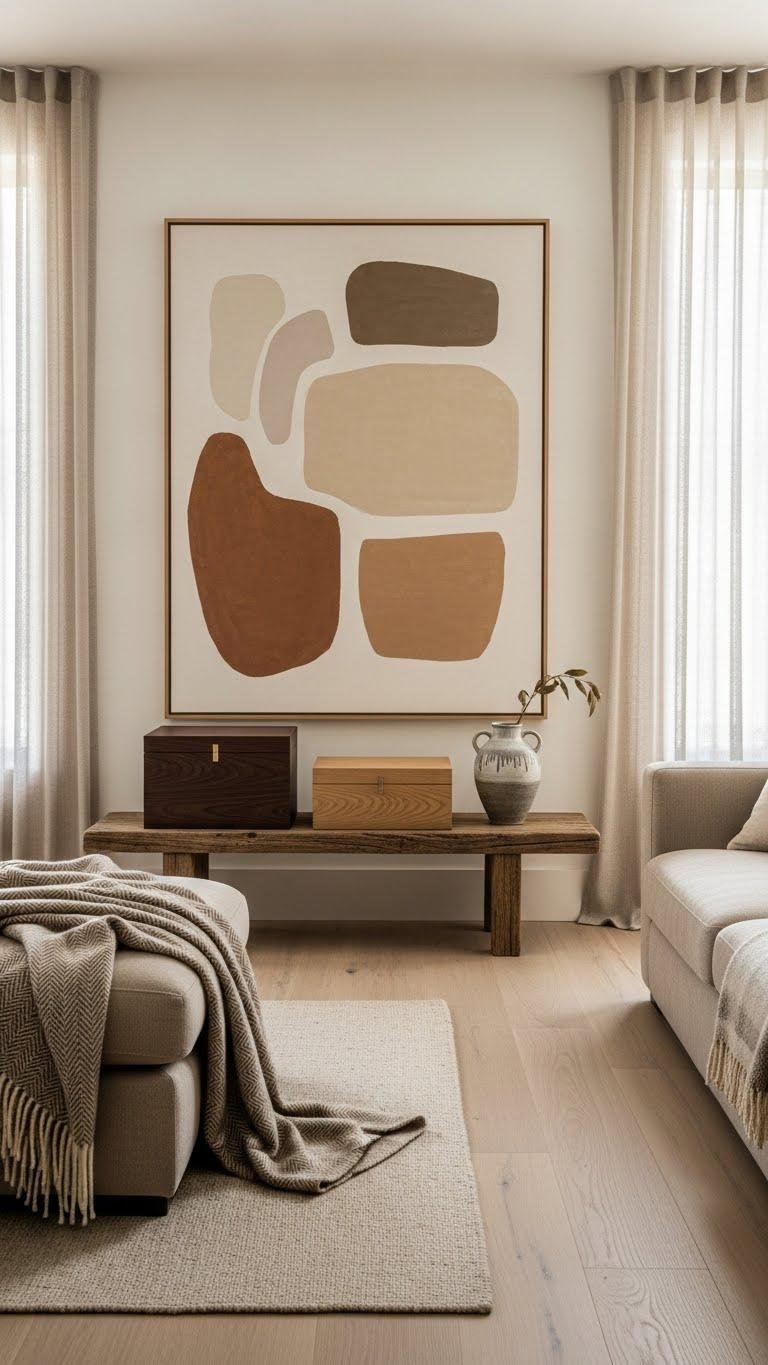 Layered textures set the mood; now pick a warm neutral palette to reinforce that feeling. Choose sun kissed neutrals—soft cream, muted terracotta, gentle taupe—to brighten and calm. Balance with cozy beige accents in pillows or throws for subtle contrast.