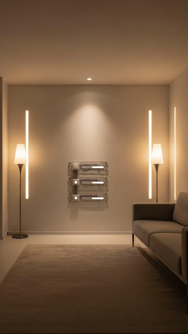 Often you’ll rely on soft, dimmable ambient layers to set the room’s mood — they create warmth without competing with your minimalist lines.