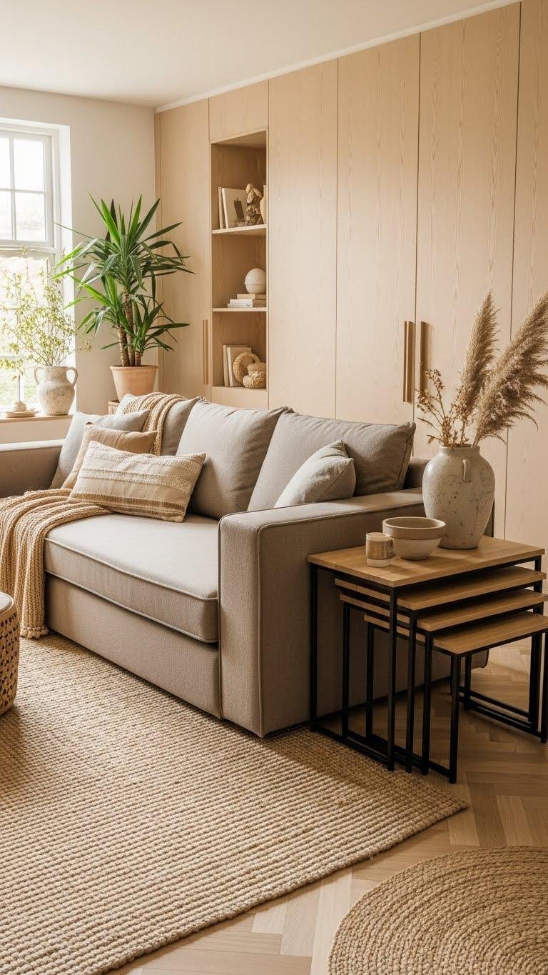 Choose a convertible sofa for effortless hosting and restful solitude, then pair it with nesting tables that tuck away when you crave open floor. You’ll gain flexible seating, hidden storage, and clean lines that let you move freely, simplify routines, and enjoy a serene, adaptable room.