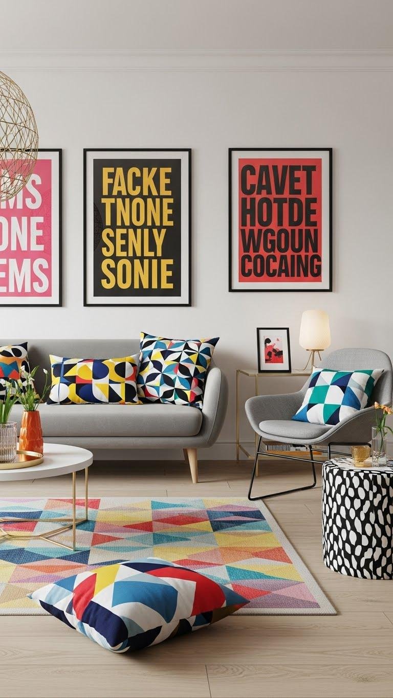 Choose bold geometric cushions, rugs, or framed art to anchor zones without overwhelming flow. Mix retro typography posters with minimalist furnishings for contrast, and rotate accents seasonally to keep freedom fresh. Measure sightlines, balance color intensity, and secure lightweight pieces for easy swaps.