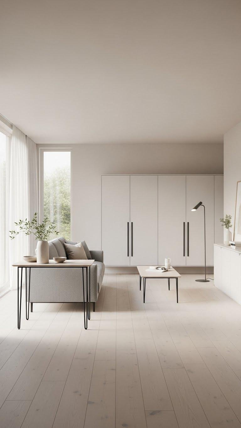 When you let daylight lead the design, rooms feel larger, cleaner, and more Scandinavian — strip heavy drapery for sheer panels or no window coverings at all, position mirrors to bounce light into corners, and choose low-profile furniture that won’t block sun paths; pale walls and reflective surfaces amplify the glow so your neutral palette reads bright and airy throughout the day.