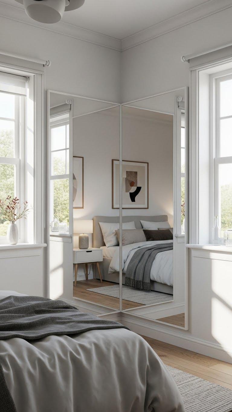 Placed across from a window, a mirror doubles daylight and instantly deepens a small bedroom, giving you more perceived space without structural changes.