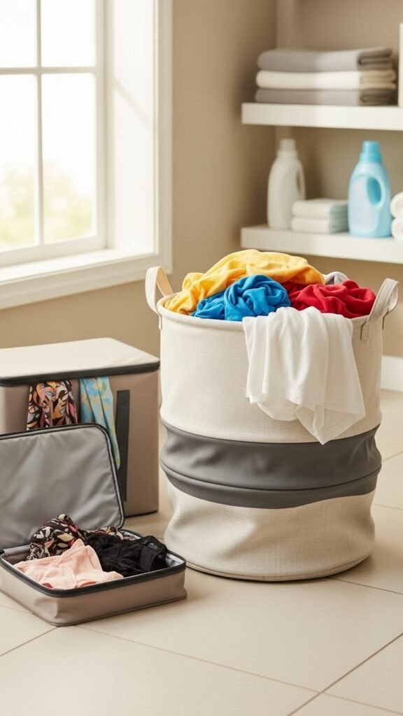 Grab a sturdy portable basket with comfortable handles and you’ll make laundry runs faster and neater. Choose foldable hampers for compact storage and quick setup; pick woven or canvas finishes to keep things airy and stylish. Use insulated totes for delicate items or temperature-sensitive fabrics.